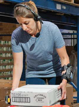 The operator wears headsets earphones with noise-canceling microphone connected to a normal RF terminal used in other processes in the warehouse. This connection can be wired or even wireless if the operator works with a pick-orders and a truck terminal.
